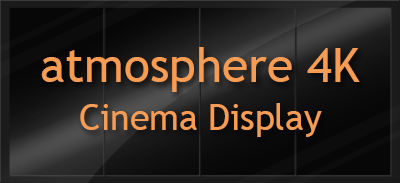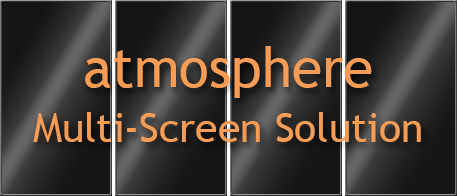 For customized and larger installations the atmosphere multi-screen solution allows to combine any size of displays on the market. The resolution is 4320 x 1920 with a 21:9 cinema ratio. Displays can be set up as a large video wall or as four individual screens.
